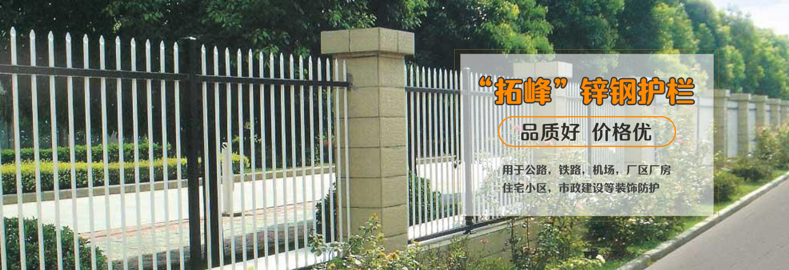邢臺拓峰護欄有限公司專業生產鋅鋼護欄、鋁合金護欄、景觀護欄、河道護欄、金屬護欄等產品